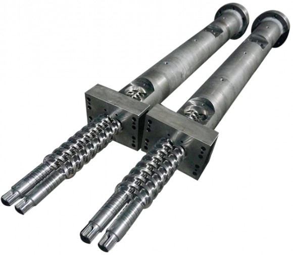 Shafts perpendicular: It is the support and drive component of Parallel Twin Screw. They are manufactured through precision machining with high accuracy and consistency. The design of shafts perpendicular can reduce the weight and friction of the equipment and improve the operating efficiency and life of the equipment. The rotational motion of shafts perpendicular can drive the rotation of the screw to achieve efficient mixing, conveying and processing of materials.