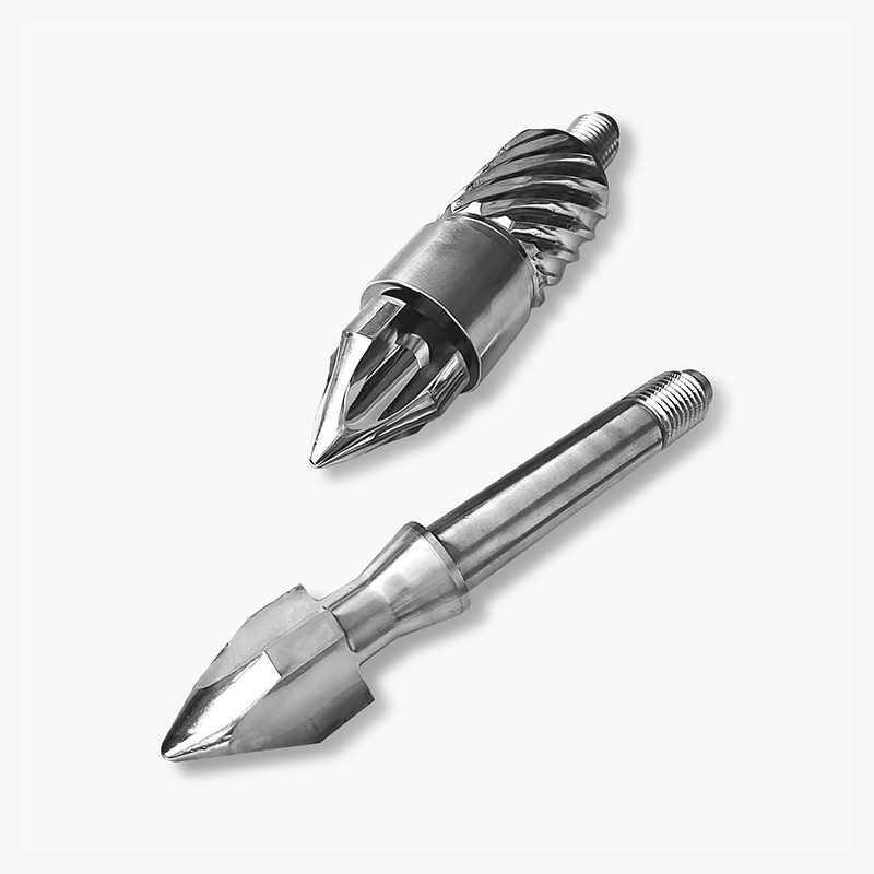 As the key supporting component of the injection molding machine, the front stage is forged with high-strength SKD61 alloy steel and has excellent high temperature resistance, wear resistance, and deformation resistance. Its precise processing technology ensures perfect fit with the injection molding machine body, and the optimized flow channel design improves the flow efficiency of the melt, bringing higher output and lower energy consumption to the production line. The three major components of the screw are the core of the plasticizing system of the injection molding machine, which directly affects the plasticizing quality and production efficiency of the plastic. We use SKD61 advanced alloy materials, combined with advanced heat treatment processes, to ensure that the three major components of the screw have excellent wear resistance, corrosion resistance and high temperature resistance. The precise grinding process ensures that the screw fits tightly with the barrel, reduces the gap, avoids material leakage, optimizes the plasticizing effect, makes the product molding more uniform and delicate, and meets the requirements of high-precision injection molding.